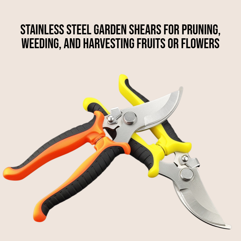 Durable stainless steel gardening scissors for precise cutting, rust resistance, and comfortable grip. Ideal for pruning, trimming, and harvesting plants.