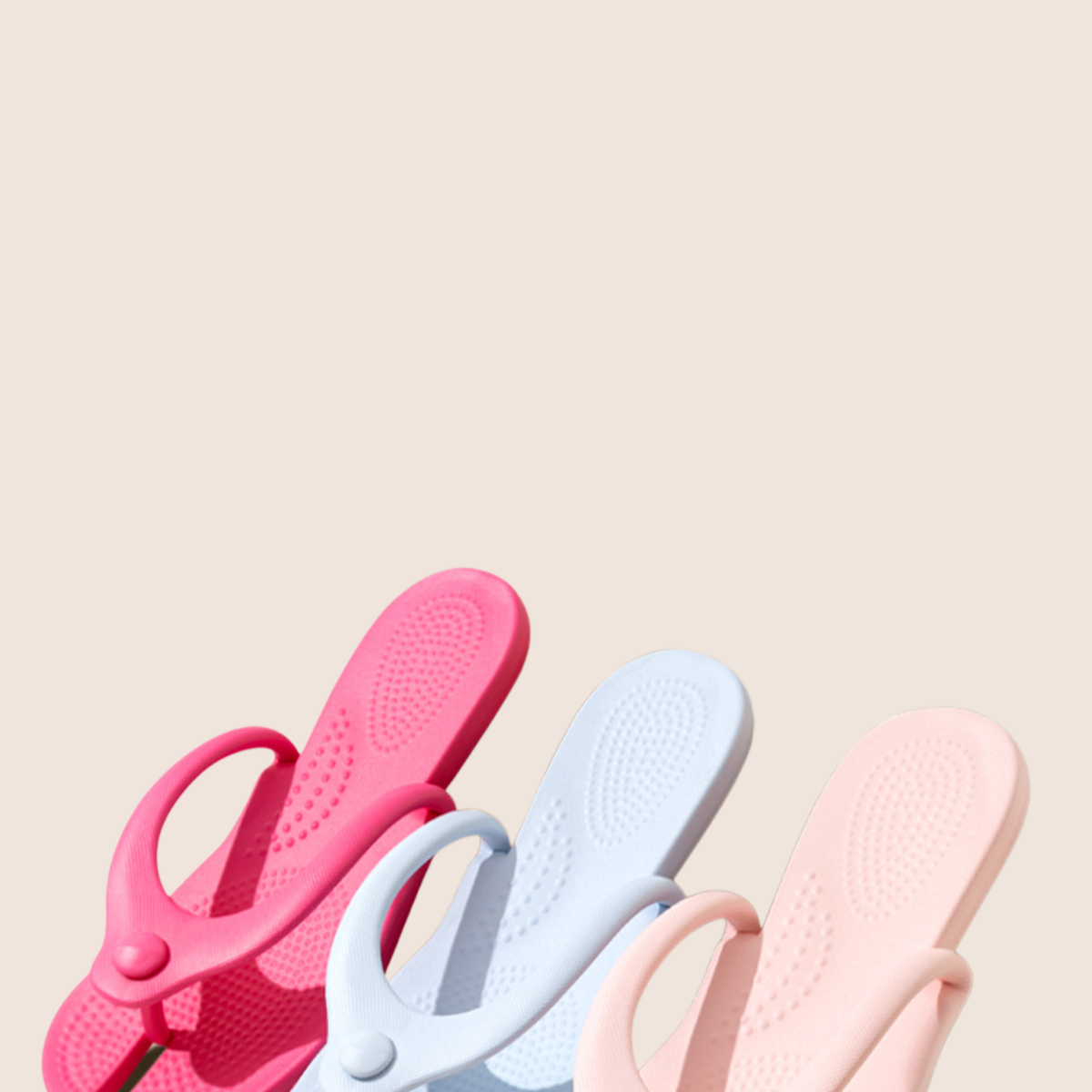 Portable and lightweight foldable travel slippers. Easy to pack, convenient for hotels, flights, and outdoor use. Non-slip sole and washable material.